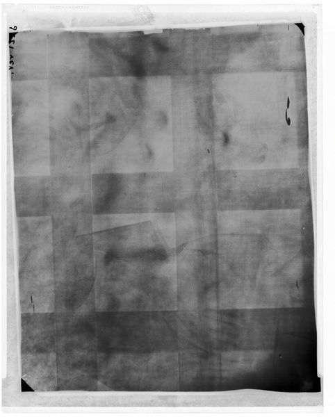 Editor: This is an X-radiograph of "Madonna and Child (of the Pomegranate)" after Giovanni Bellini, revealing the under layers. It's fascinating to see the process, but so different from a finished painting! What can we learn about the making of this work from this image? Curator: We see the support, likely canvas, secured with tacks. The different densities suggest varying application of materials, perhaps lead white. Consider the labour involved in preparing these materials, grinding pigments, stretching canvas. Where were these materials sourced? How does the materiality connect to the final image's meaning? Editor: It’s amazing to think about all those steps, all the hands that touched this, before the "art" even began! Curator: Exactly. Examining the material conditions demystifies the artwork, and roots it firmly within a social and economic context. What do you think? Editor: I think I’ll never look at a painting the same way again. It's all about the layers, literally and figuratively!