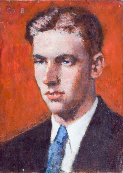 Editor: Here we have Denman Waldo Ross's "Portrait of a Young Man in Suit and Tie", a small painting at about 14 by 10 inches, now at the Harvard Art Museums. There's a quiet confidence in the young man's gaze. How do you see this portrait? Curator: It speaks volumes about the construction of masculinity and power. The suit, the tie, the gaze—these are all signifiers of privilege and belonging within certain societal structures. Does his gaze invite you, or does it seem to challenge you? Editor: I think it's challenging, almost like he's daring me to question him. Curator: Exactly. And who gets to be portrayed this way? Who is excluded from this narrative of success and authority? Thinking about these questions helps us unpack the painting's deeper meanings. Editor: That's a really interesting way to look at it; I hadn't considered the power dynamics at play. Curator: Art often reflects and reinforces societal norms, but it can also be a tool for dismantling them. Editor: I'll definitely keep that in mind as I look at more portraits.