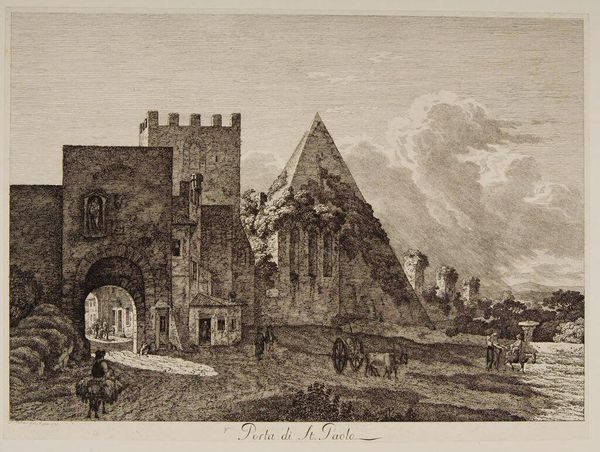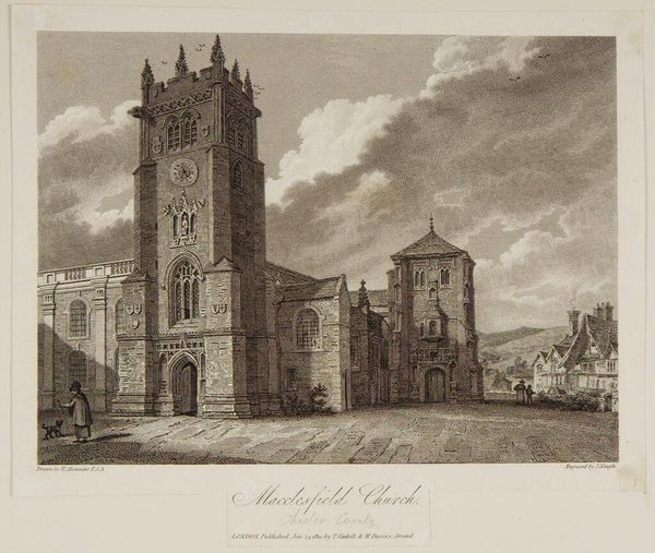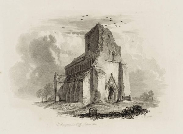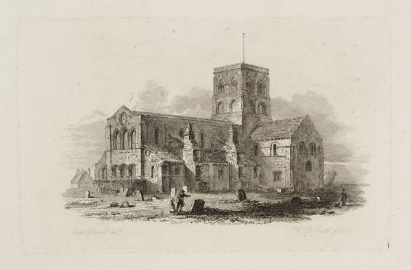 Editor: This is William Byrne’s "Priory Church at Elstow, Bedfordshire." It's hard to ignore the starkness of the architecture, especially set against the overgrown foliage. What social commentary might Byrne be making here? Curator: Well, consider the period. Images of decaying abbeys and priories were popular, tapping into anxieties about religious authority and social change following the Dissolution of the Monasteries. How does the print media itself contribute to this message? Editor: Maybe the print’s accessibility allowed for a wider dissemination of these sentiments, democratizing the critique? Curator: Precisely. The image is no longer confined to the elite; it enters the public sphere, fostering debate and shaping perceptions. So, the ruin becomes not just a visual subject, but a political one. Editor: That’s fascinating. I never considered how the medium itself could be part of the message. Curator: Art’s power often lies in its distribution and reception, not just its creation.