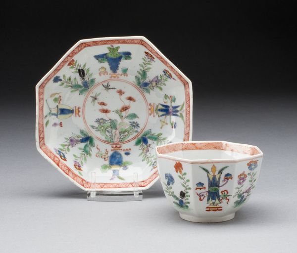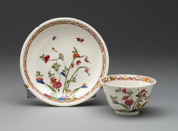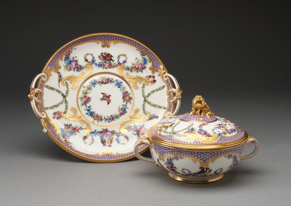 This delicate porcelain Chestnut Basket and Stand were created by the Worcester Royal Porcelain Company. While we don't have specific dates, understanding the historical context of porcelain production in Europe helps us appreciate this object. During the 18th and 19th centuries, porcelain was a symbol of wealth and refinement, closely tied to European aristocratic culture and global trade networks. Objects like this one reflect a time when elaborate dining customs and decorative arts were central to displays of social status. The basket’s intricate details and floral decorations evoke a sense of idealized nature, a common theme in decorative arts intended for domestic settings. These objects offered narratives of beauty and abundance, reinforcing the societal roles and expectations of those who used and displayed them. While seemingly benign, these objects subtly underscore the values of a hierarchical society.