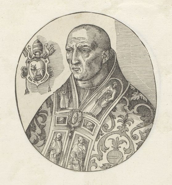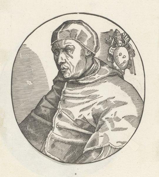 This is an engraving, dating from an unknown date, portraying Pope Sixtus IV, made by an anonymous artist. The composition is striking for its stark simplicity. Encased within a circle, we observe the profile of Pope Sixtus IV set against a neutral background. The artist has skillfully used hatching and cross-hatching to model the form, creating depth and volume in the figure's face and vestments. The lines are dense, yet they are applied with such precision to articulate the texture of the fabric and the contours of the Pope's face. Notice the inclusion of the papal coat of arms. Its presence serves not only to identify the subject but also as a symbolic marker of authority and power, reinforcing the Pope's status within the religious hierarchy. The lines that define form and space converge to create a powerful image. The visual language employed here is not merely descriptive; it constructs a visual narrative of power, identity, and representation.