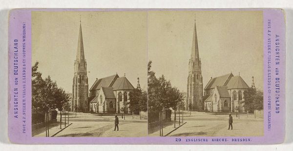 Editor: So, here we have “Voorgevel van de Basilique Notre-Dame te Arcachon,” or “Facade of the Notre-Dame Basilica in Arcachon” created sometime between 1862 and 1876 by Jean Andrieu. It's a daguerreotype, giving it this incredibly delicate, ethereal quality. What strikes me most is the basilica's height compared to its surroundings, yet the subdued tones somehow soften its grandeur. What do you see when you look at this, more than just a pretty facade? Curator: It’s like stepping back in time, isn't it? A photographic haiku, if you will. Beyond the architectural details and the soft glow of the daguerreotype, I find myself pondering the aspirations embodied in that soaring spire. Think about the time this was made—a period of immense social and technological change. Churches were physical manifestations of hope, piercing the sky, weren’t they? I wonder, does that resonate even now? Editor: I can see that. The upward thrust definitely has this yearning quality, especially juxtaposed against the relative simplicity of the surrounding townscape. It also feels staged almost like actors waiting to walk up those steps. So what do you make of this idea in relation to its religious function? Curator: Absolutely. Andriu plays the stage director perfectly, framing faith through steel and glass. Look how cleverly Andriu composes, capturing how a building embodies aspirations, freezing a spiritual concept into something permanent. Is it just a facade or something with purpose? Editor: It is strange, isn’t it? To see the architecture framed and frozen into a moment. I never would have considered the human component, thanks for pointing this out. Curator: Every old photograph is both mirror and window - to see what *was* as a reflection of what could be... makes you wonder about where photography will lead, doesn’t it?