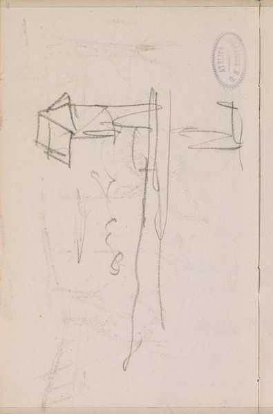 Editor: This is George Hendrik Breitner's "Studieblad," a pencil drawing from between 1881 and 1883, housed here at the Rijksmuseum. The aged paper and tentative lines give it an intimate feel, like peering into the artist’s private thoughts. What do you see in this piece? Curator: This sheet reads as a series of potential pathways, half-formed, mirroring how the eye travels across the page. Look at how these disparate images are anchored: a table, building facades, or perhaps doorways. All rendered with an immediate realism, but, importantly, presented as fragments. Do you notice how the negative space amplifies the uncertainty? Editor: I do, and that’s what makes it compelling. It feels like I'm catching glimpses of scenes, like fleeting memories. It isn't polished and precious, it is raw. It reminds me of quickly writing something down. Curator: Precisely! The symbolism resides not in clearly defined forms, but in the suggestive power of suggestion. These simple lines allow one to fill in their meanings, and tap into the viewers' own archive of lived experience to complete what Breitner began. We bring ourselves to the piece, do we not? Editor: Definitely! That's interesting. Curator: This intimate dance, this silent dialogue between the artist's initial impulse and our interpretive act, bridges time and culture, inviting contemplation and, perhaps, even self-discovery. What initially appeared a humble study reveals a profound commentary on how we create and experience meaning. Editor: I never thought a simple sketch could contain so much! It’s like a Rorschach test for art history. Curator: Indeed, and the power of such a work remains relevant, echoing through art, inviting fresh connections across the cultural landscape.