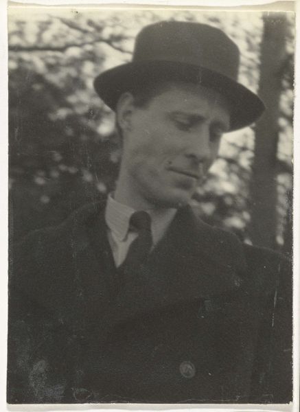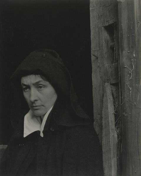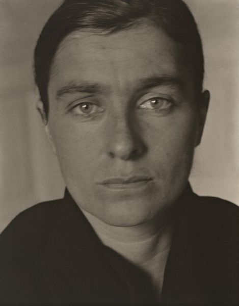This close-up portrait of Georgia O’Keeffe was captured by Alfred Stieglitz sometime in the early 20th century using gelatin silver print. The image's tones feel like a delicate dance between light and shadow, revealing the subtle textures of skin and fabric. It's interesting to consider how Stieglitz manipulated the developing process to achieve such a range of contrasts. There's an almost painterly quality to the way the light falls across O’Keeffe’s face, creating a sense of depth and revealing the nuances of her expression. I keep returning to the way the shadows frame her eyes, drawing you into her gaze. It's a gaze that feels both intense and vulnerable, inviting you to contemplate the mysteries of the inner life. Stieglitz’s portraits of O’Keeffe are reminiscent of Edward Steichen’s portraiture, with both artists exploring the possibilities of photography as a medium for capturing the essence of their subjects. Like any good artwork, this image remains open to interpretation, inviting us to bring our own perspectives and experiences to the act of seeing.