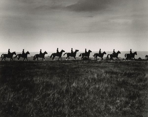 This gelatin silver print, “Egypt,” was made by Dorothea Lange. It’s so simple, almost stark: a boy riding a donkey, caught in profile against a pale sky. What I love is the way Lange uses light and shadow to flatten and shape the image. Look at the donkey’s body – it’s not just black, but a gradient, fading towards a ghostly white underneath. This isn’t just about documenting a scene; it’s about feeling the weight and form of the animal, the boy perched on top. It’s like Lange is sculpting with light, finding the essence of the moment. There’s a directness here that reminds me of Walker Evans, another photographer who knew how to make the ordinary feel monumental. Both Evans and Lange see the potential to embrace art as ambiguity.