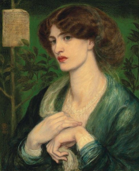 "The Twig" was painted in 1865 by Dante Gabriel Rossetti. The painting has an arresting quality that draws you into the subject's enigmatic world. The woman is depicted with a contemplative gaze. Rossetti uses a muted palette, dominated by shades of green and earth tones, to create a visual field that is at once calming and subtly unsettling. The composition follows a triangular structure, grounding the figure and enhancing the sense of stability, yet the gaze off-centre adds tension. The formal elements of colour and line contribute to the symbolic undertones of the work. The twig, which is centrally placed, may symbolize nature's fragility and the transient quality of life. The piece also destabilizes conventional notions of beauty. Rossetti draws attention to the way that the model’s physical features work within the broader framework of artistic and philosophical investigation. The painting’s structure encourages us to ponder the interaction between outward appearances and deeper, more complex significance, challenging simple interpretations.