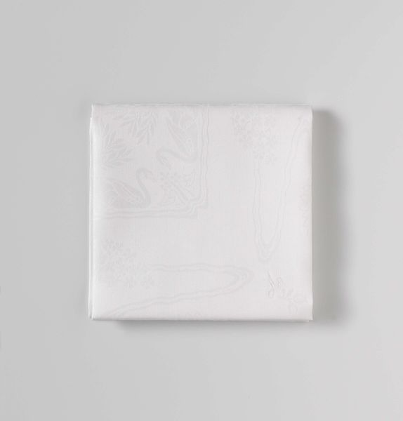 Curator: Well, this is an interesting one. What do you make of its compositional elements? Editor: Austere. Perhaps even a bit clinical in its crispness? I’m struck by how the subtle, near-monochromatic variations create depth despite the limited palette. The texture suggests a restrained opulence. Curator: You've zeroed in on some critical points! What we're observing is a damask finger cloth, "Vingerdoek van damast met dessin Fuchsia" is its Dutch name, and it was produced sometime between 1900 and 1935. Woven using the damask technique, of course. Editor: And damask implying the intricate weaving adds structure beyond pure decoration. But that botanical motif—quite stylized, yes? The curves and almost geometric interpretation give it an Art Nouveau flair. Curator: Precisely. This cloth shows the rising vogue of Art Nouveau at the time. With artists like Cornelis van der Sluys, whose profile aligns perfectly with works advocating for accessible art infused into everyday objects. Editor: There's a functional beauty here, it’s a utilitarian object raised almost to fine art. Tell me more, does the fuchsia carry symbolic weight? Curator: Definitely! Beyond merely aesthetics, there's a growing interest at the time in linking design with societal improvements and personal upliftment. These textiles served as domestic markers of cultural refinement. A progressive view, indeed. Editor: And look at the almost minimalist handling of light and shadow, purely from the weaving’s raised sections, creates dynamism on a still object. It also mirrors some philosophical concerns within Art Nouveau where natural is not directly replicated. Curator: A critical reflection of nature rather than replication – I agree. How society processes or perceives botanical form is the crux of Art Nouveau's visual project. Editor: What strikes me, overall, is that, though commonplace in its intended use, its understated elegance quietly disrupted traditional hierarchical categorizations. Curator: Well observed. Ultimately this damask finger cloth gives a clear picture of that time when domestic goods transformed into a narrative of shifting societal priorities and a growing demand for beauty.
