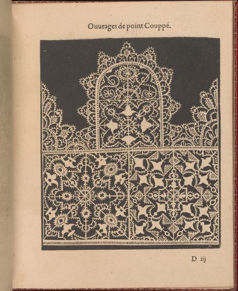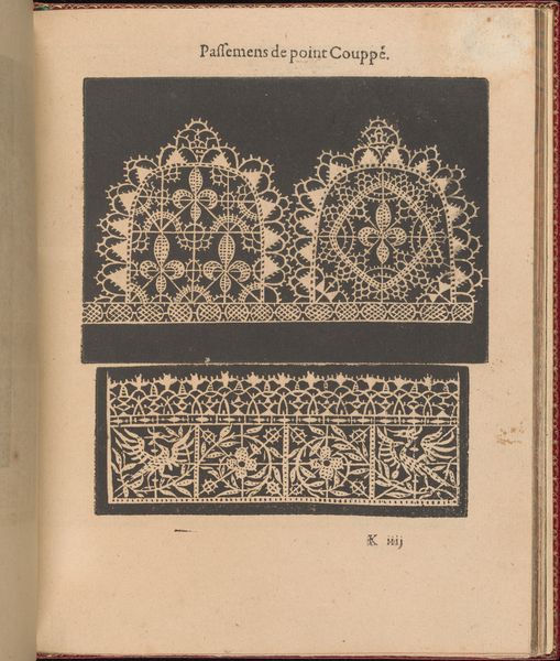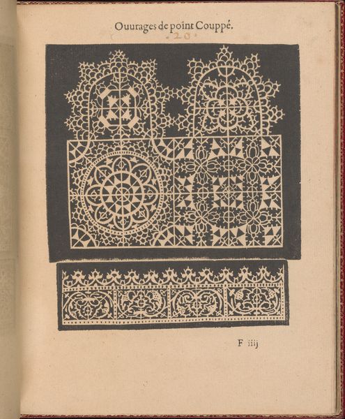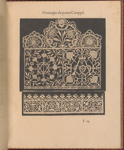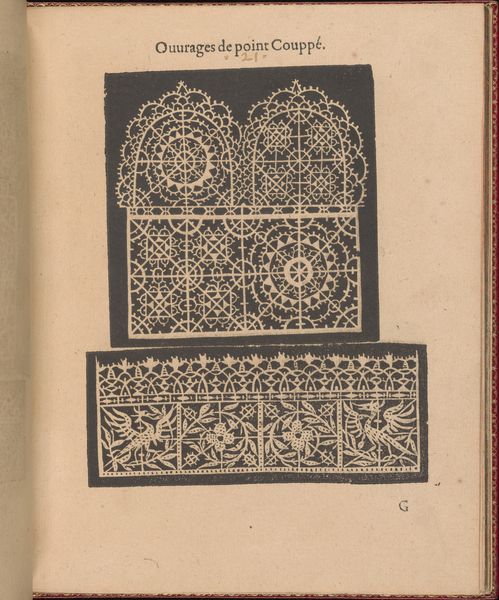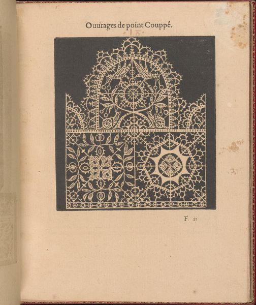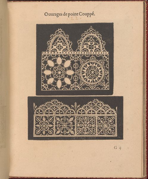 This is Plate 21 from Federico de Vinciolo’s “Les Singuliers et Nouveaux Portraicts,” a lace-making pattern book, published in Paris in the late 16th century. Lace was more than a mere adornment; it was a marker of status and wealth. Sumptuary laws often dictated who could wear it, making lace a visible signifier of social identity. De Vinciolo, originally from Venice, became a "brodeur ordinaire" to King Henri II, which gave him access to elite circles. This plate demonstrates the geometric and floral patterns popular in lace design at the time. Look closely, and you'll see motifs like birds and stylized flowers, reflective of the natural world. This was a period where fashion and art were intertwined. These pattern books democratized design, allowing skilled artisans, often women, to produce intricate textiles. Lace making was a widespread source of income for women, but their names are often lost to history. This book preserves their emotional labor and creativity in crafting beautiful and complex works.