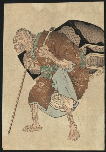 Tsukioka Yoshitoshi created this woodblock print titled ‘Hitotsuya no tsuki’. It depicts an elderly woman standing at the doorway of her dilapidated house on a moonlit night. Note how the moon, partially obscured by leaves, evokes a deep sense of longing and melancholy, themes that recur throughout art history, as seen in Caspar David Friedrich's landscapes. The moon, a universal symbol of change and mystery, is present in ancient lunar deities like Selene or Luna from classical antiquity. The house, barely standing, is reminiscent of the cycle of life and decay, similar to the memento mori tradition. The way the woman is holding a firebrand, lighting her path, parallels the use of candles in funerary portraits, as well as the torches held by figures in classical depictions of Hades or Persephone, illuminating the passage from life to death. This convergence of symbols creates a powerful emotional resonance, tapping into our collective understanding of life’s transient nature and the cyclical return of familiar motifs through history.
