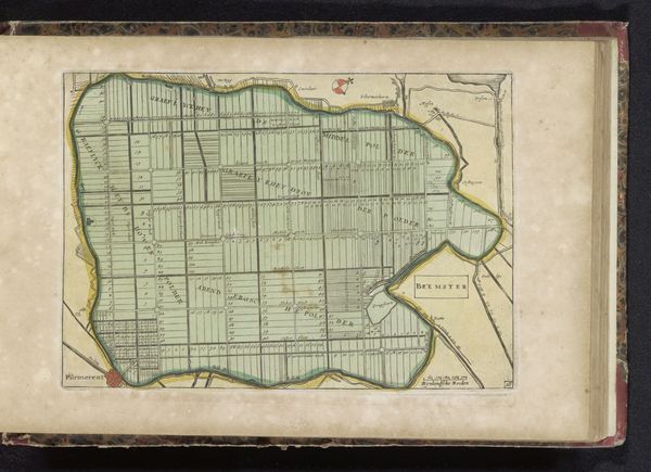 Curator: What strikes me is the overall delicacy of the lines in this set of maps dating from 1700 to 1735, detailing polders in Waterland and Watergraafsmeer. Look at the way the artist uses watercolour on paper to capture these regions! Editor: It feels so orderly, doesn't it? Almost... regimented. The pale greens and pinks give it a soft, almost ethereal quality, but the straight lines and divisions feel very purposeful. I wonder about the lives lived within those carefully plotted spaces. Curator: Indeed, it's important to understand the context here. The Dutch Golden Age was a time of intense land reclamation and these maps would have been crucial tools for managing and developing these territories. They represent both an understanding of, and an attempt to control nature. Editor: Control, yes, that's it! There's an undeniable sense of wanting to tame something wild. But there’s also beauty, don't you think? The watercolour bleeds and softens those hard lines just enough to let the imagination wander. Curator: The beauty is, in part, intentional. Mapmaking in this era wasn't purely functional. Maps were also statements of civic pride and economic power. Their presentation, the lettering, even the colours chosen, were all part of projecting an image of prosperity and stability. Think of them as infographics, but with added artistry. Editor: Like little framed real estate brochures? Only far more elegant. All this reclaimed land. So orderly. Still, a question arises: Did all that ordering of nature ultimately allow for freedom, or was freedom sacrificed to its design? Curator: That's a complex question, of course, but one well worth considering. It highlights the constant push and pull between individual autonomy and collective organization in Dutch history. The relationship is still relevant today. Editor: Definitely. It gives me a new perspective when I look at maps. They're not just neutral guides. They are charged with politics, ambition, and even, dare I say, poetry! Curator: Absolutely. Seeing these antique renderings as objects reflecting this history changes the perspective for me too, providing context that enables appreciation on both aesthetic and intellectual planes.