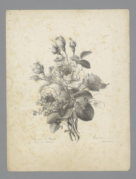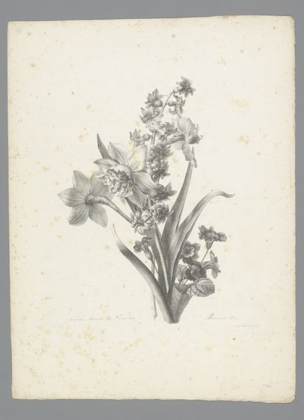 Editor: Here we have "Bouquet with tuberose, dahlia, coreopsis and scented mignonette," a pencil and paper drawing from 1824 by Auguste Piquet de Brienne, housed right here at the Rijksmuseum. It's incredibly detailed, almost photographic in its realism, and somewhat melancholic, don’t you think? What strikes you most about it? Curator: Beyond its undeniable beauty, I find myself considering the historical and social context of such a piece. The meticulous rendering, the choice of specific blooms – these aren't arbitrary. Flower symbolism was intensely coded in the 19th century. How might this bouquet function as a form of visual language? What conversations could it incite surrounding gender roles and class expectations? Editor: So, it's not just about pretty flowers? Curator: Exactly! Consider the rise of botany as a science, intricately linked with colonialism and the exploitation of resources. Are these 'exotic' blooms symbols of imperial reach? Further, we might think about the artist, Auguste Piquet de Brienne, and his social positioning. Did his artistic choices challenge or reinforce the status quo? These seemingly simple floral images often reflected a complex negotiation of power dynamics. Does the specific arrangement of these flowers signify something specific in the language of flowers? Editor: That’s fascinating. I hadn’t considered the link to colonialism. So, the artist is participating in or perhaps commenting on something larger? Curator: Precisely. He is imbedded within a larger historical trajectory, knowingly or not. Exploring art is a powerful way to examine these socio-political and cultural discourses. Editor: I never would have thought of this level of analysis looking at flowers. Thanks for opening my eyes to the possibilities! Curator: My pleasure! Remember, art invites us to delve into these interconnected narratives. Every mark carries a story worth unearthing.