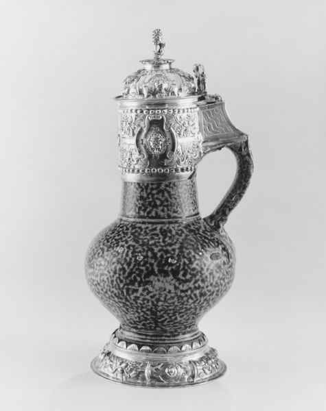 Curator: Oh, hello! Take a moment to marvel at this striking silver teapot. Jean-Baptiste-Claude Odiot, a celebrated silversmith, crafted this beauty somewhere between 1805 and 1815. It resides here at the Met. Editor: It's regal! The whole object is polished silver but I cannot take my eyes off of that spout, which is shaped like a lion's head! It feels very powerful and intentional. Curator: Absolutely! There's a baroque boldness to it. What I find fascinating is how Odiot balances classical forms with a sense of whimsical storytelling. See that relief on the side? It depicts a playful scene, maybe Cupid, riding a lion. It disrupts the pure functionality. Editor: I wonder how something so precious exists amidst inequality. Fine silverwork, historically, meant intense social disparities and labor exploitation, a craft subsidized by systemic injustices. Do we ever reconcile luxury with liberation? Curator: It's a loaded object, certainly. The artistry itself, though, feels so fluid, so imaginative, even rebellious. Don’t you think? It makes me question our neat definitions of ‘decorative’ and ‘fine’ art. Can design disrupt expectation as much as painting can? Editor: Definitely. It speaks to the material history of colonialism. This silver had to come from somewhere—whose land? Who mined it? Whose hands refined it into something so intricate for elite consumers? The luxury distracts from underlying oppression. Curator: And yet...it's also deeply personal. Odiot’s vision comes through, a real audacity in manipulating the metal. It is difficult not to wonder what parties this teapot attended! Did they recognize the historical currents swirled into their teacups, like uninvited guests? Editor: Perhaps this "teapot" served not only as an object but as a status marker, symbolizing privilege and dominance during an era rife with sociopolitical conflicts and imperialism. It raises poignant questions about how cultural narratives reflect and perpetuate inequity. Curator: Well, whatever it witnessed, it continues to pose questions. Thanks for prompting these thoughts, these questions – and reminding me to really look beyond the silver gleam. Editor: Art like this prompts difficult reflections; they invite necessary reckoning with intertwined beauty and brutal pasts, to dismantle systems of oppression encoded even in a beautiful teapot.