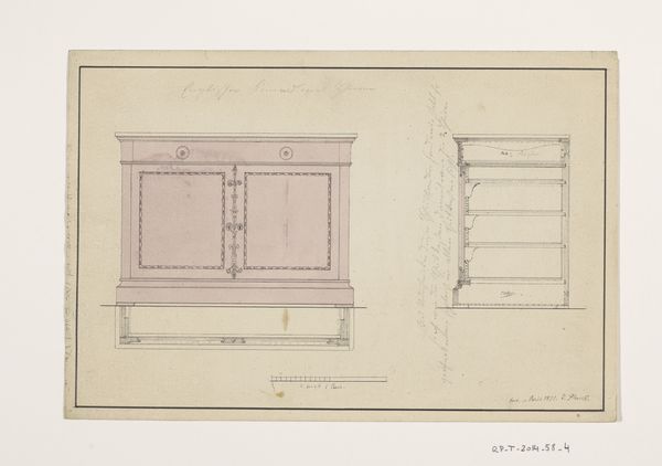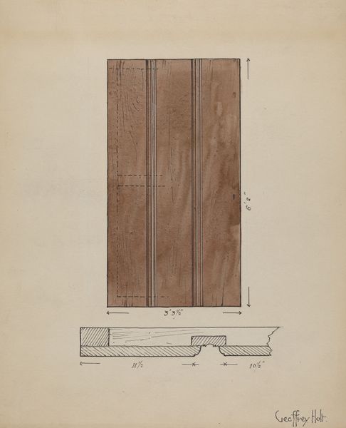 This is Harry Eisman's 'Settee', drawn at an unknown date with an unknown medium. It's interesting how the precise lines and measurements give the object a real sense of presence. It's less about the depiction of an object than the process of envisioning it into existence. Look closely at the lines; there's a mix of confidence and care. The sepia tones and uniform line weight create a sense of quietude and purpose. The regular structure of the settee's back is broken by the irregular verticals. It's like a meditation on stability and change, or control and freedom, which is the struggle for any maker. The subtle variations in line weight humanize it, giving it a kind of visual breath. I see a connection to Agnes Martin’s grids, a similar balance of precision and the handmade. Both invite a kind of contemplative viewing, where the simplicity of form allows for a deeper exploration of the surface and material. In the end, it's about the dialogue between the artist, the object, and us.