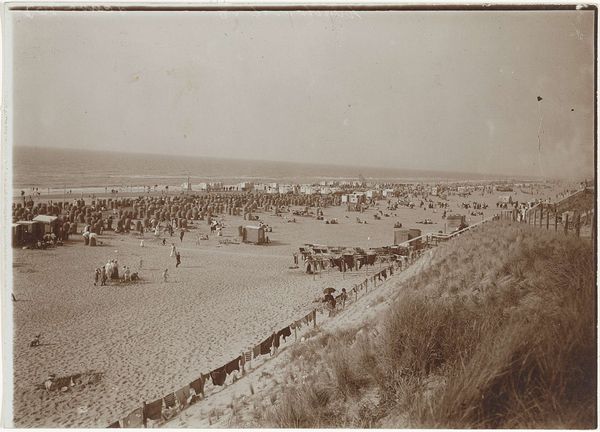 Knackstedt & Näther made this picture of a crowd of people on the beach in Zandvoort, and it’s like stepping back in time. Look at the muted, sepia tones, almost like the whole scene is dipped in tea. It’s got that dreamy quality, where the details soften and blend. The surface of this photograph has a beautiful texture. See how the light catches on the people and the water, kind of grainy and alive. I love how the crowd seems to go on forever, their figures blurring into a mass of hats and coats. It's not about perfect clarity here, but more about the overall feel of the day. I wonder if it was sunny or overcast. It reminds me a little of some of Gerhard Richter's blurred photos; they both capture a sense of something fleeting. The edges are soft, the focus isn't sharp, but there’s a real feeling of a moment lived, like we were there, too.