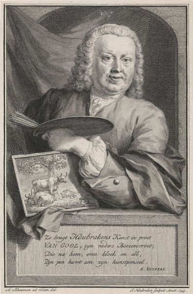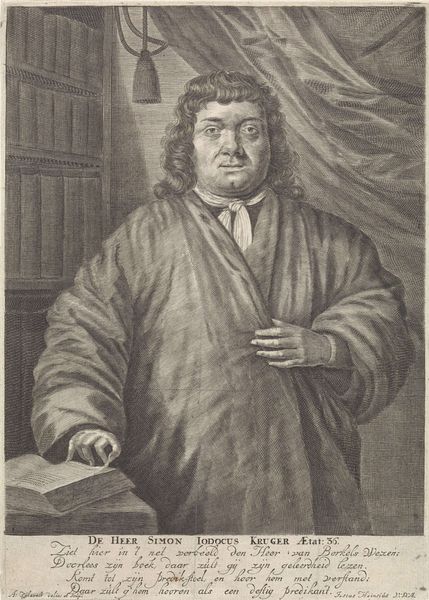 Editor: Here we have Pieter Schenk's engraving, "Portret van Martin Luther," dating sometime between 1670 and 1713. The detail is really impressive, even though it's relatively small. Luther’s gaze is so intense... almost confrontational. How do you interpret this work? Curator: That intensity is key. Notice how Luther is framed within the oval, almost like a religious icon, while the inscription, "Pietas homini tutissima virtus" above him elevates him to near sainthood. The Bible he holds becomes not just a book, but the symbolic bedrock of his transformative challenge to religious authority. How does that reading resonate with you? Editor: It makes sense. So the artist isn’t just showing us Luther; he's crafting a specific image of him? Highlighting him as the cornerstone of something bigger? Curator: Precisely! Schenk is using established visual tropes – the book, the gaze, the very medium of engraving which lends a sense of timeless authority – to cement Luther’s image as a defender of faith, battling darkness with the clear light of the scripture. The gesture of his hand? It echoes classical oratory, transforming him into a messenger of divine truth. Editor: Wow, I wouldn't have picked up on those layers. It seemed like a straightforward portrait at first glance, but it is much more intricate when viewed as a collection of impactful and intentional visual signifiers! Curator: It’s a potent reminder that portraits can be powerful pieces of visual rhetoric, filled with cultural and psychological weight. Each element chosen to craft the desired impression and ensure its longevity. Editor: Definitely gives me a new perspective on portraiture! Thanks.