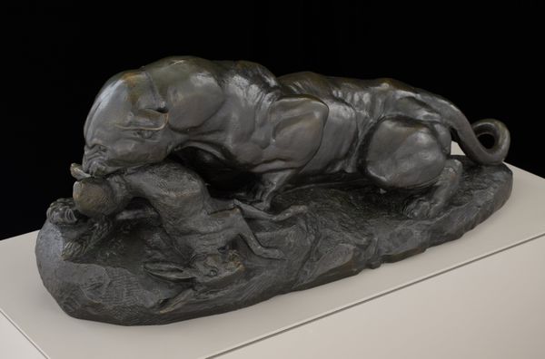 William Rimmer created "Fighting Lions", a sculpture, whose date is unknown. It now resides in the Metropolitan Museum of Art. The dark, polished bronze captures a brutal, intertwined struggle, evoking a raw, primal energy. Rimmer’s approach to depicting conflict moves beyond simple representation. Instead, the sculpture offers a study in dynamic form and anatomical expression. Note how the intertwined bodies create a complex interplay of positive and negative space. This use of form pushes the limits of representation, leaning towards abstraction as the musculature and tension are exaggerated. The lions aren't just fighting; they embody the very essence of conflict, their forms almost dissolving into pure struggle. The sculpture invites us to consider how art can destabilize our understanding of form and representation, challenging fixed meanings. Rimmer presents a space for ongoing interpretation and reinterpretation of struggle and existence.