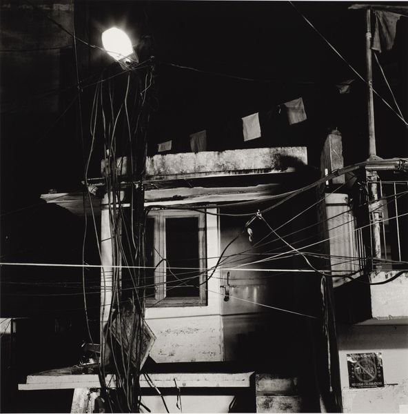 Editor: So this black and white photograph, titled "Barber" by Daido Moriyama, captures a barber's pole in stark detail. It’s a bit gritty, and I'm curious about the story it's trying to tell through such everyday subject matter. What do you see in this piece? Curator: It's less about story and more about the means of production. Consider the photograph's materiality: the graininess, the high contrast. These aren’t accidental. Moriyama deliberately uses these techniques, challenging the idea of a pristine, objective image. How does this aesthetic choice relate to the social context of post-war Japan? Editor: Well, the rough aesthetic could reflect the raw, unfiltered reality of the time... Curator: Exactly. And think about the barber’s pole itself, a mass-produced object, now elevated to art. Moriyama's work asks us to consider the labor and the system of consumption behind even the most mundane objects. It disrupts traditional hierarchies, doesn't it? Editor: It really does. I didn't think about the production aspect initially, but it adds so much depth to the work. Curator: Precisely. Seeing art through the lens of materials and social context gives it new meaning.