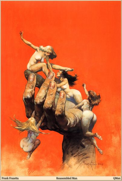 Curator: Let's turn our attention to the poster for the 1978 film "Every Which Way But Loose." Robert Peak, a master of the form, created this visual fanfare. Editor: Okay, first impression? It screams "1970s machismo meets monkey business." There's something so delightfully absurd about it that makes me smile. Curator: Indeed. The composition, while seemingly straightforward—the dominant figure of Clint Eastwood juxtaposed with the orangutan—relies heavily on the circle motif. Note how the circular frame containing a constellation of faces echoes the orangutan's face, creating a dialogue of characters, or perhaps archetypes, within the narrative. Editor: Archetypes! I like that. For me, it’s like, Eastwood represents the rugged, stoic hero. The orangutan, the wild, untamed sidekick, adding a dose of comic relief. And then, yeah, all the background faces are this hilarious collage, like a biker gang, lovers, fighters and villains all competing for space in the main narrative. Curator: Precisely. The visual language of the poster borrows heavily from a type of heroic realism prevalent at the time, while its tonal qualities offer a distinct pictorial depth and interest. Peak very effectively renders an American mythology for a mass audience. Editor: So, what's fascinating is that, by today’s standards, the film itself would be deemed problematic. However, that poster... it’s sort of an anti-heroic pastiche with these exaggerated heroic postures and the presence of a lovable orangutan. It's like a knowing wink about its own cultural absurdity. Curator: The poster achieves precisely this effect—a meta-commentary, as it were, packaged within a compelling advertisement. Through the orchestration of image and text, Robert Peak managed to deliver a rather lasting reflection on cinematic stereotypes. Editor: It’s true. Despite, or maybe because of, its absurdity, this image manages to spark something, makes me reconsider everything, what's heroic and what's silly.