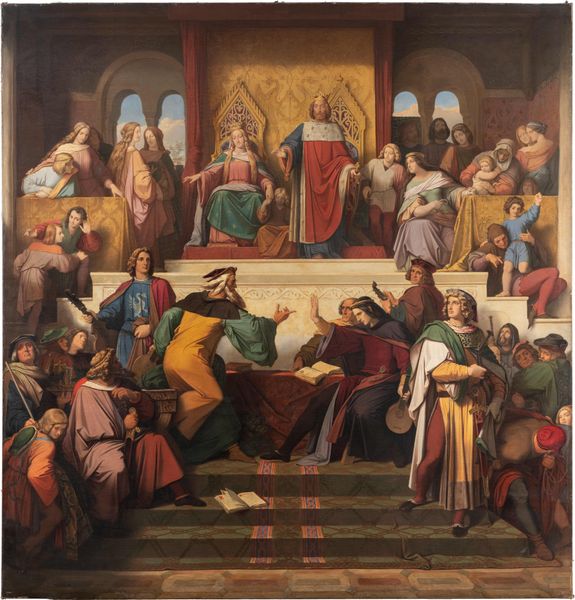 Ford Madox Brown painted “Chaucer at the Court of Edward III” to depict a scene of the medieval court. Brown situates the artist Chaucer as a central figure within the royal court. The painting reflects the Victorian era's fascination with the medieval period, a time seen as a foundation of national identity. During the 19th century there was a growing sense of English nationalism which sought to define and celebrate English culture and history. Chaucer, seen as the father of English literature, became a symbol of national pride. Brown's painting can be viewed through the lens of gender as it idealizes women as passive figures within the court. They act as muses for male creativity, reflecting the limited roles often assigned to women in historical narratives. The painting idealizes a moment in English history, fostering a sense of national identity, while it presents a very specific narrative of gender roles.