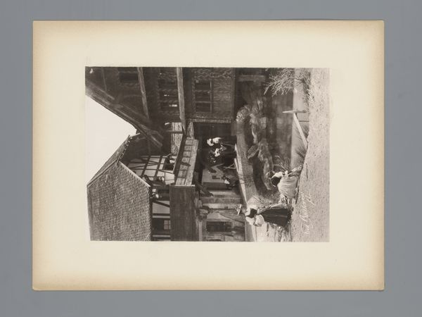 Editor: This is Frédéric Boissonnas’ gelatin silver print, “Straatgezicht in Nyon,” taken before 1896, which translates to “Street View in Nyon." It’s a cityscape; the monochromatic image gives it a somber, almost nostalgic feel. What captures your attention in this photograph? Curator: What stands out to me is how Boissonnas navigates the evolving public perception of photography in the late 19th century. It’s realism, yes, but it's clearly aiming for Pictorialism. It is not a purely documentary approach; consider how carefully the scene is composed. Look at how he frames the architecture, particularly focusing on the textured details and the play of light. This gives a strong impression of artistic intention beyond mere recording. Do you notice how the figures seem placed within this carefully designed framework? Editor: Yes, I see what you mean. The figures aren't just wandering; they contribute to the ambiance. But, were photographs considered "art" at that time? Curator: That’s precisely the tension Boissonnas is engaging with. Photography was vying for recognition as an art form. He bridges the gap by employing techniques like soft focus and tonal manipulation—strategies used in painting—to elevate his photographs beyond simple snapshots and into the realm of artistic expression. Editor: So, he's using the subject matter of the street, a very real scene, to assert photography's place in the art world through Pictorialist techniques? Curator: Exactly. The subject isn’t merely a street; it's a canvas for exploring artistic photography’s possibilities within the established, and arguably more socially accepted, genre of realist painting. The framing creates depth; its sharp and soft textures enhance atmosphere. His composition demonstrates the social ambition of photography. Editor: I never thought of it that way – considering both the artistic ambition and the social context in photography. That helps me appreciate the photographer's approach and its historical importance a lot more. Curator: Precisely! Considering the history and cultural forces allows us to have deeper insight on how social factors are embedded within images.