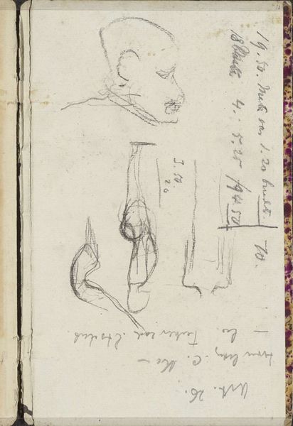 Curator: This is "Mannen in historisch kostuum" or "Men in Historical Costume" by Johannes Tavenraat, dating from 1841-1853. It's a pen and ink drawing on paper currently housed at the Rijksmuseum. Editor: It has an unfinished feel – almost like doodles in a notebook. The figures are so loosely sketched. What's striking is the contrast between the detailed historical costumes and the artist's quick, almost impatient, execution. What do you see when you look at this piece? Curator: The immediate focus is drawn to the line work. Note how Tavenraat utilizes varying line weights to define form and texture. The hatching and cross-hatching create depth and shadow, particularly in the clothing. Do you observe the tension between the controlled detail of the costumes and the sketch-like quality of the figures? Editor: Yes, definitely. It's like he's meticulously studied the garments but is less concerned with capturing realistic human forms. Is he maybe trying to capture the *idea* of these figures, rather than photographic representations? Curator: Precisely. Consider the semiotics of clothing. What meaning do these historical costumes convey? They denote status, profession, perhaps even specific historical periods. But these symbols are placed within a framework of incompleteness, a sketch. The structure calls attention to what is depicted. Editor: So, he’s using the details of the costumes to evoke specific ideas, but the sketchy execution pushes us to think about representation itself? Curator: Precisely. The inherent tension between the detailed costumes and the almost impulsive lines makes it hard to classify this artwork, and calls us to question representation and style in art of the 19th Century. Editor: I never thought of it that way! Thanks, I'll look more closely at the execution of detail versus the entire image and consider the ideas portrayed through the images depicted.