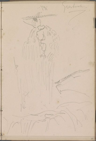 Curator: Here we have a piece called "Kop en poten van een papegaai," or "Head and paws of a parrot," by Carel Adolph Lion Cachet, dating from around 1890. Editor: Wow, that’s lively. Looks like something scribbled quickly in a sketchbook. It's like the artist was chasing a thought. The unfinished lines, the different perspectives... gives the impression of fleeting movement. Curator: Absolutely, and that's partially intentional. Cachet likely made this in preparation for a more complete study or painting. You see these sketches quite frequently, particularly in academic art circles during the period. It's about understanding form, gesture...breaking down the animal into its constituent parts, you might say. Editor: But it feels like more than just anatomy. There's a quirky charm. Almost as if the parrot is giving us the side-eye. And look at those claws, rendered with such elegant ferocity! They could definitely give you a nip. You get the sense that this isn't just about observation, it’s about the personality he perceived in the bird. Curator: Interesting that you focus on personality, as there are clearly representational intentions at play in many animal studies of the era. Zoology was burgeoning at the time. But in the realm of art, yes, there were debates raging about imbuing animals with human-like traits as an artistic device. We know Cachet was aware of these discussions. Editor: So he's inserting himself into a bigger cultural debate even through a humble drawing like this? That gives the piece added weight. I’d say he really succeeds, making something more memorable than your average scientific illustration. I’ll bet many found inspiration in this and his other quick drawings and illustrations. Curator: Indeed. These sketchbooks often functioned as a kind of public display for other artists, to further promote trends or personal philosophical insights through aesthetics. And the Rijksmuseum is pleased to exhibit a fine example today! Editor: Well, I’m off to find a parrot—to study its personality. Curator: Do be careful of its paws!