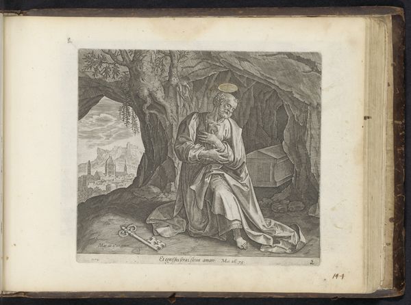 Curator: This print, titled "Kuisheid," meaning "Chastity" in Dutch, was created by Cornelis Cort around 1560. You can find it here at the Rijksmuseum. It’s an engraving on paper. Editor: My initial impression is…contemplative. There's a stillness to it, even in the busy linework. A quiet strength, but almost melancholic. Curator: Yes, it encapsulates that Renaissance blend of moral allegory with a certain…humanism, shall we say. Cort uses very precise lines, almost surgical in their clarity, to build this ideal of chastity, of purity. The figure cradles a bird, and holds lilies... symbols loaded with meaning, of course. Editor: Absolutely. The lilies are classic symbols of purity and innocence, especially associated with the Virgin Mary. And the bird... perhaps a dove, representing peace, but its limp posture suggests something more. Maybe a sacrifice? It feels like something is given up here. A freedom? Curator: Precisely. Consider the setting, too. She’s seated against rocks and what seems like a dead tree—nature in a state of patient waiting, not lush and thriving. It amplifies that sense of restraint, even suppression. The flowing drapery, rendered meticulously, both reveals and conceals the body, creating tension, no? Editor: Absolutely. The textures are remarkable. You can almost feel the weight of the fabric. I also see, she looks to her left… into a space we can not see? Maybe the "chastity" to which she devotes herself resides just out of view of the audience? Curator: That glance pulls us into the narrative, doesn't it? It begs the question: what has she renounced? What are the implications of choosing such a path? Look also, this devotion seems to come at the cost of joy. Or is it resilience? Is this virtue something found only through hardship? The piece refuses to tell us outright. Editor: True, it holds that ambivalence. Is it a celebration, a warning, or simply a detached observation of a societal ideal? Maybe it is each of these? What initially struck me as melancholic now carries a note of defiant dignity, or at the very least commitment to an ideal at no matter what cost. Curator: A profound image—and certainly a lot to chew on. Thank you.