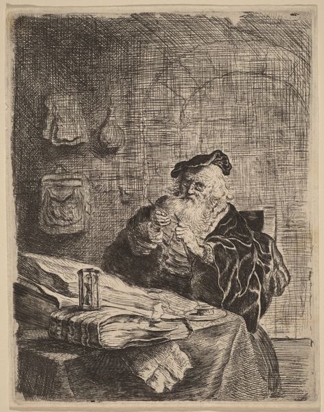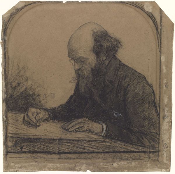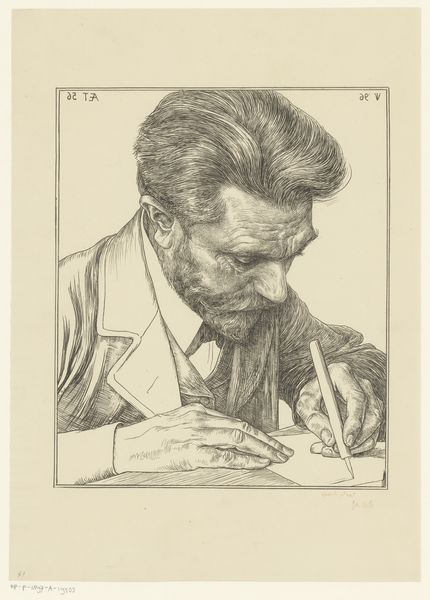 Anders Zorn created this etching, titled "Axel Herman Haig III," capturing the act of creation. Our eyes are drawn to the engraver’s hands, poised with tools, performing the delicate dance of artistic production. The subject, Axel Herman Haig, is captured in a moment of intense focus, head bowed, brow furrowed. This posture evokes the archetype of the contemplative thinker found in countless images across history, from ancient philosophers to Renaissance scholars. Look at Dürer's "Melancholia I" where we see a similar pose embodying intellectual struggle and the weight of thought. Here, the act of engraving becomes a symbol of cultural memory, a lineage of craftsmanship passed down through generations. The engraver, like a scribe, etches his visions into a plate. The image transcends its immediate context, resonating with the collective unconscious. The symbol of hands and the process of making resurfaces again and again, evolving to reflect the values and anxieties of each new era. The image touches something profound, a shared recognition of the power of human creativity.