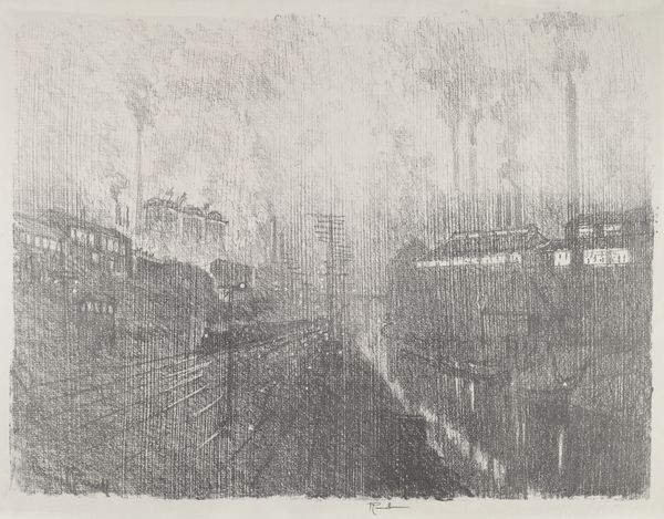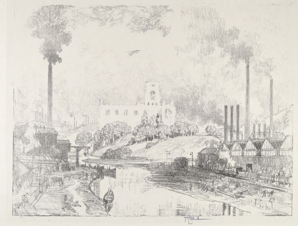 Joseph Pennell made this print, Munition Works, at an unknown date using etching. It’s kind of like a delicate dance of dark and light here, isn't it? Pennell uses these tiny, nervous lines to build up the image. Look at how he’s layered them to create depth, especially in the smokestacks. The way the ink sits on the page, it almost feels like you could reach out and touch the gritty texture of the industrial landscape. Focus on how the smoke billows from the chimneys, those marks aren't just about depicting smoke, they’re about the energy and the relentlessness of industry. It’s a controlled chaos, a push and pull between representation and abstraction. Pennell's work reminds me a bit of Whistler's, in that both artists captured the mood and atmosphere of their environments using subtle tonal variations.