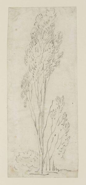 Editor: We’re looking at “Plant, mogelijk een varen” - that’s “Plant, possibly a fern” - a pencil drawing by Antoon Derkinderen, created sometime between 1889 and 1894. It’s a light sketch, quite delicate. I wonder what inspired him to capture this particular fern. How do you interpret this piece? Curator: It's tempting to see this simple sketch within the larger context of late 19th-century artistic movements. There’s a growing interest in botanical studies during this period, fueled by both scientific discovery and a romantic idealization of nature. Consider the rise of botanical gardens and public parks, attempts to bring nature into increasingly industrialized urban landscapes. Do you think that resonates here? Editor: That’s a really interesting point. I hadn’t considered the impact of industrialization. So, the drawing becomes not just a study of a plant, but almost a symbol of something being lost? Curator: Precisely. The fern, rendered in such a delicate, almost fleeting way, could be read as a commentary on the disappearing natural world. Also consider the rise of the Arts and Crafts movement during this time, advocating for a return to traditional craftsmanship and natural forms. Editor: So, it's part of this broader cultural moment where people are re-evaluating their relationship with nature and industry. Curator: Exactly. Even the act of sketching itself can be seen as a rejection of mass-produced imagery, a personal, almost meditative engagement with the subject. Think of it as a quiet rebellion against the industrialized world, using a humble pencil and a piece of paper. Editor: It's fascinating how such a simple drawing can be so deeply connected to the social and cultural shifts of its time. I’ll never look at botanical sketches the same way again! Curator: Indeed. Art, even in its simplest form, is always in conversation with the world around it. It encourages us to question our values.