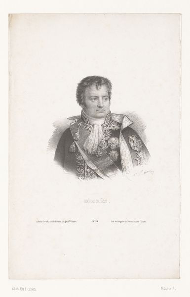 Curator: This is a print entitled "Portrait of Jean Dominique Compans" made around 1818 by Charles Aimé Forestier. It employs engraving, a printing technique where the design is incised on a metal plate. Editor: It strikes me as quite stark. The subject’s stern gaze combined with the monochromatic tones creates a formal, almost severe atmosphere. What were engravings typically used for at this time? Curator: Predominantly for reproducing images and disseminating them widely. Think of it as a proto-photocopy, making art and information more accessible. The crisp lines would be crucial to render detail in maps, scientific illustrations, or portraits like this. The creation of a reproducible image involved meticulous handwork from a skilled artisan. This engraving’s stark aesthetic stems from its limited use of shading—contrasts, and layering marks that may speak to Forestier's approach in efficiently translating his sitter to a print. Editor: You make me think about the economics involved. It certainly democratized portraiture to some degree, but the engraver’s labor, the access to materials, and the commissioning of these works likely still involved certain echelons of society. A general like Compans likely held influence that enabled him to have access to representation, correct? Curator: Absolutely. The subject's military attire is very carefully rendered with various awards— the elaborate decorations indicate his status and valor. Neoclassical portraiture served a distinct social function: preserving the image of prominent individuals for posterity but, more immediately, consolidating and furthering one's social reach, so it begs the question how prints might accomplish such visibility? Perhaps it relates to distributing them as tokens. Editor: Tokens that speak volumes about power and legacy. Looking at it again, it’s interesting to consider this object as both art and propaganda, playing into the construction of heroism at a time of great social upheaval. Curator: The print serves as evidence of complex exchange and power at the turn of the nineteenth century and as an object of artistry. Editor: Exactly—a material trace of socio-political dynamics made accessible for our scrutiny today.