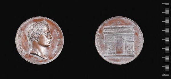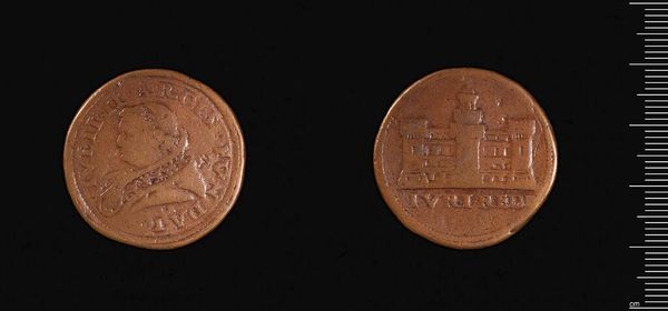 Curator: This is a medal of Emperor Napoléon I, made by Duclos. It's a fascinating piece, offering a glimpse into how Napoleon wanted to be seen. Editor: My first thought? It's smaller than I imagined! It's like holding power in miniature. The copper has this warm glow, almost like a sunset on a battlefield. Curator: Indeed. The front depicts Napoleon in full regalia, standing on what appears to be a pile of…cannonballs? The inscription is “To the Great Man, the Nation is recognizing”. Editor: Cannonballs, yes, quite the statement! It feels... a bit much, don't you think? All that ambition condensed into this tiny circle. It almost feels like a fever dream. Curator: It does reflect the spirit of the age, the cult of personality, but also the political messaging in post-revolutionary France. On the other side, there's a list of Napoleon's military victories. Editor: It’s incredible how much they managed to fit on it. It’s almost like they are trying to capture all of Napoleon in a pocket-sized monument. Curator: These medals were often distributed to commemorate events, and so it makes sense that Napoleon would want to carry his achievements wherever he goes. Editor: It's sobering to consider how objects like this shaped public perception, isn't it? A carefully crafted narrative in metal. Curator: Absolutely. It's a powerful reminder of the role art can play in shaping history. Editor: I'll never look at a coin the same way again!