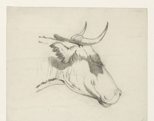 Curator: Johannes Tavenraat created this drawing, titled "Head of a Deer, facing left," sometime between 1819 and 1881. It's rendered in pencil on paper and currently resides here at the Rijksmuseum. Editor: My first thought is stillness. It’s as though the deer has been caught in a moment of complete tranquility, a profound stillness in the wild. Curator: The artist certainly captured a palpable sense of realism. Look at the precision in the lines defining the deer’s form, each stroke contributing to its lifelike quality. It mirrors the larger 19th-century move towards representing subjects with greater fidelity and direct observation. Editor: Absolutely, the realism is undeniable. Yet, for me, the single antler presented makes the deer incomplete, somehow vulnerable. The deer, in some contexts, historically embodies virility and independence. This rendering touches on themes of vulnerability, stripping away certain romantic associations. Curator: An interesting read. Beyond pure representation, deer are powerful symbols, acting as messengers and spirit guides in many cultures, evoking notions of intuition, grace, and the subconscious mind. Deer often stand for a connection to the forest and an appeal to nature’s gentler side. Editor: That gentler side appears so distinctly here in the image's overall palette, creating such a softened affect. It's sepia, almost monochromatic, underscoring an intense emotional concentration and calling attention to the themes of transience, perhaps? It feels quite detached from specific narratives. Curator: Yes, and considering the period, we might reflect on this work within the tradition of animal portraiture, especially within the burgeoning bourgeois culture, when there was growing interest in representing nature’s grandeur within the domestic sphere, a growing enthusiasm that fed into zoology and hunting culture as well. Editor: It leaves me pondering on the delicate balance between observation and imagination and the emotional complexity an image can still elicit after centuries have passed. Curator: Indeed. By closely attending to the artistic legacy embodied in such works, we enhance our awareness and broaden our sense of the interconnectedness of cultures.