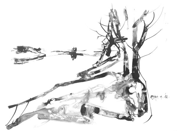 Alevtyna Kakhidze made this artwork titled Euromaidan, with ink on paper. At first glance, one observes a deliberate chaos in the composition; a network of lines creating forms that barely contain themselves within the frame. There's a tension between representation and abstraction, as the eye attempts to decode the forms and their arrangements. The network of lines might suggest barricades or perhaps the emotional entanglements of political upheaval. Kakhidze seems to challenge the viewer. Are we looking at a depiction of physical space or an emotional landscape? Ultimately, this piece exists as a meditation on how we perceive and interpret reality through fragmented and abstracted forms. It acknowledges that what we see is always filtered through our own subjective lens, and invites us to question the stability of meaning in both art and life.