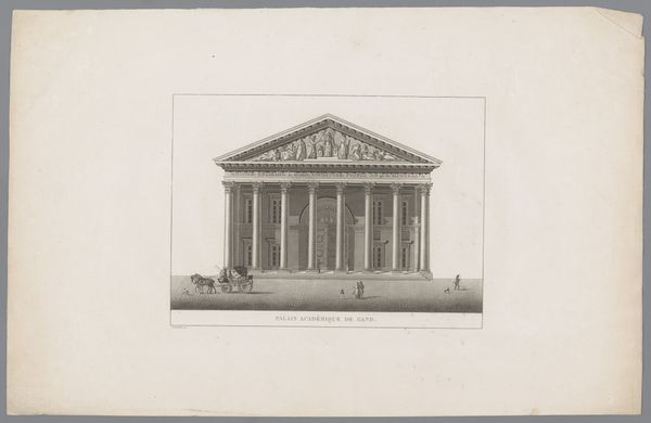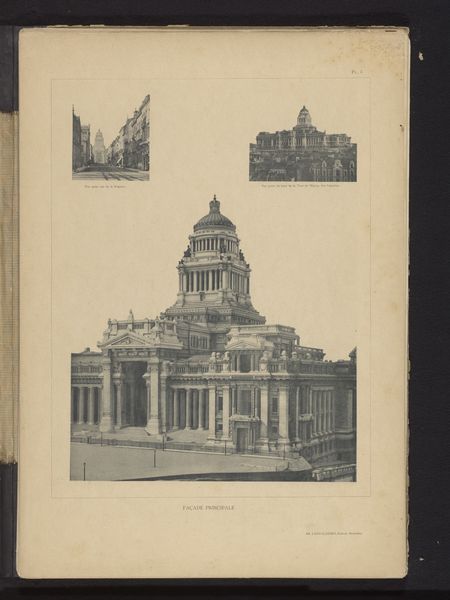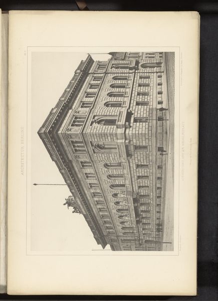 This is an anonymous print of a residential building at Vossstrasse 19 in Berlin. The composition emphasizes the building's facade, viewed from a low angle that accentuates its height and ornate details. The facade is articulated with alternating bands of brickwork and decorative panels. This creates a play of light and shadow that visually enriches the surface. Arched windows punctuate the facade, their curved forms contrasting with the straight lines of the building's structure. This juxtaposition introduces a rhythmic pattern, destabilizing any sense of rigid uniformity. The building’s corner is prominently featured, emphasizing its three-dimensional form. Overall, the print captures the architectural ambition and aesthetic sensibilities prevalent at the time. The architectural elements serve as signs of cultural and social values related to status and design during the period, reflecting Berlin’s urban identity.