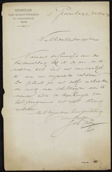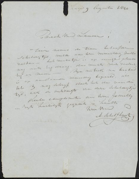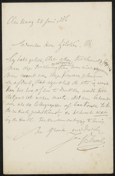 Ary Johannes Lamme penned this letter to Christiaan Kramm in Amsterdam, back in 1868. Look closely and you'll see the material reality of 19th-century communication. The paper, likely made from cotton or linen rags, feels substantial, embodying the permanence desired for important correspondence. Notice the ink. Its dark, iron-gall composition is made visible through Lamme's practiced hand. Each stroke, each flourish, reveals the skill of the writer, a skill once highly valued in a world before typewriters and word processors. Consider the time and labor involved in producing this letter: from preparing the ink, carefully cutting the quill, to composing the words. It’s a testament to a slower pace of life, a stark contrast to our instantaneous digital communications. This object reminds us that even the simplest materials carry cultural weight, connecting us to the past through the labor and the lives of those who came before.