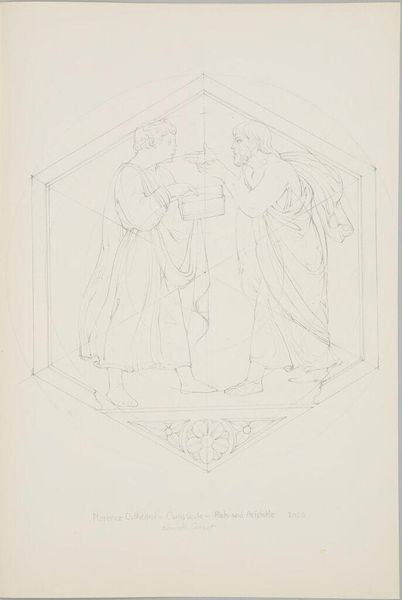 Editor: This is Kenneth John Conant's "Creation of Adam, after Giotto and Andrea Pisano." It looks like a pencil drawing, a study almost. What can you tell me about it? Curator: Well, considering Conant's choice of medium – pencil on paper – alongside the subject matter, it prompts us to consider the labor involved in both the original sculpture and this reproduction. How does the act of drawing, a more immediate and perhaps 'accessible' medium, change our relationship to the monumental scale and material of the original? Editor: So, you're thinking about the contrast between the stone carving and the pencil drawing, and the different kinds of work that went into them? Curator: Exactly! And how that shift in medium impacts our understanding and consumption of the artwork’s meaning. Editor: That's a totally different way of looking at it than I expected. Thanks! Curator: My pleasure. Considering the material conditions always opens up new avenues of thought!
