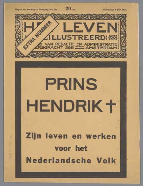 Curator: Ah, this title heading… It has such a potent and solid first impression on me! It feels... I don’t know… maybe a bit strict but reliable at the same time? What do you make of it? Editor: Well, looking at this "Ontwerp voor een titelhoofd van het Maandblad voor Vakopleiding," a design for the title heading of the ‘Journal for Vocational Training’, created by Reinier Willem Petrus de Vries somewhere between 1884 and 1952, I'm immediately drawn to how it frames artisanal labor within a context of societal structures and hierarchies. Curator: Exactly, the way he’s embedded little crowns and crests is doing a lot! Plus all those geometric shapes… They look kinda Masonic to me, no? Maybe something related to workers’ guilds? Editor: That's right! Consider that in the late 19th and early 20th centuries, the debates around vocational training were tied to anxieties about industrialization, social mobility, and the role of craft in a rapidly changing economy. De Vries' design doesn't just decorate a title; it makes a statement about the value and importance of skilled labor in shaping Dutch society. Curator: I never would’ve made this many connections… The boldness of the Art Nouveau lettering too—I mean the graphic design makes the skills talked about so official, somehow. All done in simple penwork. And all for artisans! It almost feels subversive when put that way. Editor: Precisely! And don't overlook how Art Nouveau, with its emphasis on handcrafted beauty, became entangled with ideas of national identity, economic progress, and social reform, infusing even functional designs like this with ideological weight. It really captures this cultural tension perfectly. Curator: It’s like de Vries is trying to legitimize the trades! He made the workers into people who could run a country just as well. All these connections from a humble title page... Now, when you look closer at all those Art Nouveau curls and precise corners—wow—a great commentary right under my nose! Editor: It reminds us that even the seemingly smallest design choices can embody entire social and historical universes, speaking volumes about who we are and where we are going. It really provides powerful stuff for critical discourse. Curator: I love how even simple artwork has hidden commentary about cultural standards. Makes my view broaden!