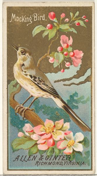 Allen & Ginter's "Swallow-tailed Flycatcher" trading card presents a captivating vignette of natural history rendered in miniature. The overall impression is one of delicate balance, both in composition and color. The cool blues of the sky contrast with the warm browns and reds of the foliage and bird's plumage, creating a harmonious yet dynamic visual field. The card employs a careful arrangement of elements, with the bird perched on a branch that diagonally bisects the space. This compositional choice infuses the scene with a sense of movement, as the bird's gaze directs our eye upward. Notice the butterfly hovering below, mirroring the bird's posture and creating a visual echo. The structure of this image taps into the semiotic codes of the late 19th century, where such depictions served not only as representations of the natural world but also as signifiers of progress and exploration. The very act of collecting these cards became a way to categorize and consume knowledge. Remember, however, that meanings are never fixed. This tiny card invites us to reflect on how we classify and interpret the world around us.