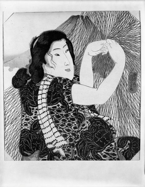 Curator: This is Hashiguchi Goyo's "Woman at the Bath," a woodblock print held at the Harvard Art Museums. It's striking in its simplicity. Editor: Yes, the grayscale tones evoke such tranquility and intimacy. It feels like a stolen moment of quiet ritual. Curator: Woodblock prints of this type were often sold to an eager Western audience, and it is important to remember the social context of these artworks. Editor: I agree, but still, even within those historical constraints, there's a real sense of the woman's agency and composure. The composition refuses to sexualize her; instead, we see a moment of self-care. Curator: Precisely. The print circulated within a commercial system shaped by specific ideas about femininity, but it also participates in a long lineage of Japanese art that depicts everyday life. Editor: So, we see this interplay between intimate portraiture and cultural framing, which asks us to consider how we interpret images of women, both then and now. Curator: Exactly, it prompts reflections on art’s role in shaping, and reflecting societal views. Editor: I'm left thinking about the power of simple images to hold such complex stories.