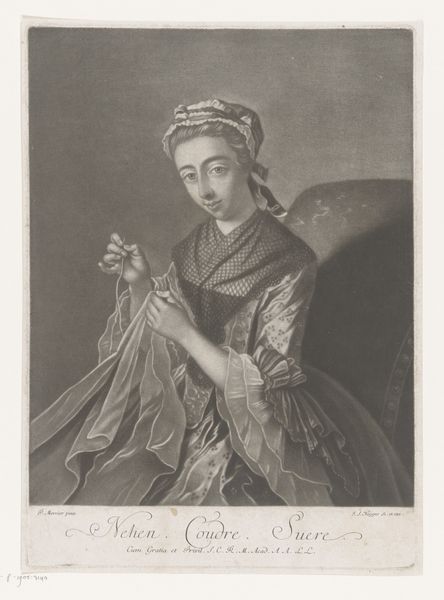 Gerhard Ludvig Lahde created this piece, titled 'En Amagerpige', using engraving. Observe the young woman’s attire, notably her patterned headwear and distinctive ruff collar, elements that mark her belonging to Amager, an island near Copenhagen known for its unique cultural heritage. Her attire isn’t merely clothing; it’s a declaration of identity, a visual language connecting her to a specific community. Consider, too, the sprig of flowers she delicately holds. This small bouquet is reminiscent of the 'flower holder' motif frequently seen in Renaissance portraiture. It has roots in antiquity, symbolizing not only beauty and fragility, but also the transient nature of life. This is much like Botticelli's Venus, where flora signals fertility and abundance. The subtle psychological depth achieved through her averted gaze and gentle smile encourages a connection to a deeply rooted human experience. The symbol of youth and beauty, touched by an awareness of life's fleeting nature, evokes a powerful, timeless resonance. This image is a recurring echo across eras, and its emotional pull lies in our shared, subconscious understanding of these symbols.