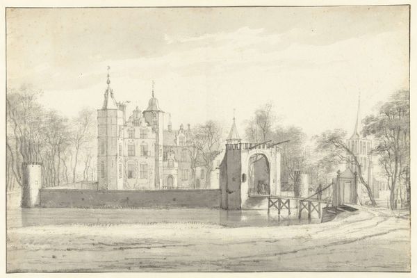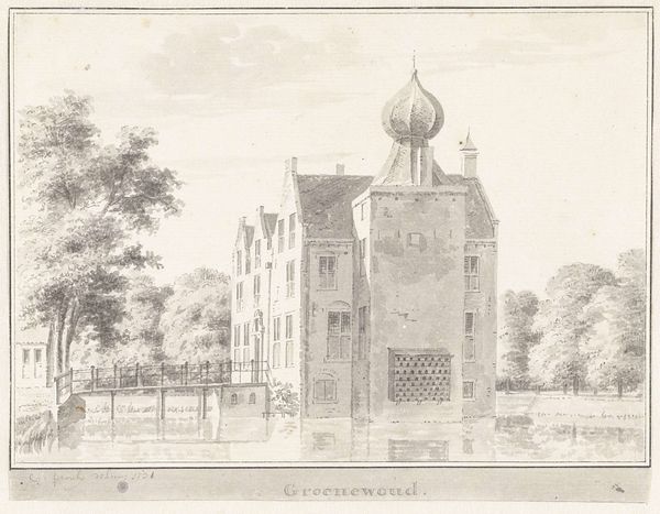 Cornelis Pronk sketched Huis Groenewoude near Amersfoort with pen in gray ink around the early 18th century. The structure's design is dominated by a large onion dome. This motif is an architectural echo, recalling the forms of antiquity and the East, symbols of power and opulence. Such a dome, though adapted to Dutch tastes, carries the weight of cultural memory. We find similar forms in Byzantine churches and Mughal palaces, each instance a conscious invocation of grandeur and authority. Consider how this shape reappears across cultures—from religious structures to secular monuments—each time subtly altered, yet still resonant with its original symbolic power. It’s a potent visual language speaking to our collective unconscious. Perhaps Pronk, consciously or not, tapped into this reservoir of meaning, imbuing this Dutch scene with a sense of timeless dignity. The dome invites the viewer to feel a sense of awe and respect, a subtle echo of the past reverberating in the present.