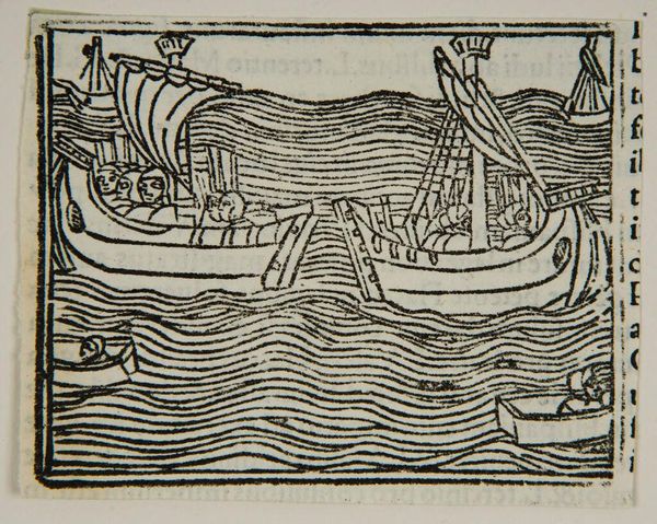Editor: This intriguing woodcut, titled "Book XXIII.41...", depicts a naval battle. The choppy waves and the intensity of the scene make it seem chaotic and even a bit terrifying. What stands out to you when you look at it? Curator: It's evocative, isn’t it? I’m drawn to how the artist, despite being anonymous, captured the drama of ancient warfare with such simple lines. It feels almost childlike, yet there's a palpable sense of urgency. Imagine being on one of those boats! Do you think that the simple representation diminishes or enhances the intensity? Editor: I think the starkness actually makes it more powerful. Thanks, I hadn't considered that. Curator: Exactly, sometimes less is more. It leaves room for our imaginations to fill in the blanks, to conjure the sounds and smells of the battle.