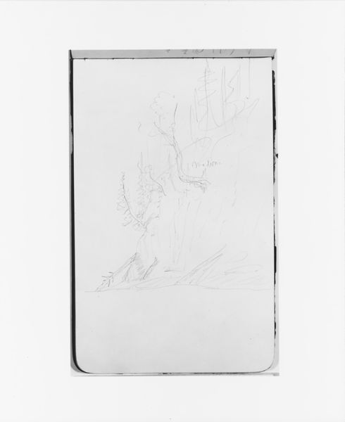 Albert Bierstadt rendered this delicate sketchbook page with graphite. The sheet is divided into two distinct landscape sketches, each marked by an elegant sparseness. The composition in both emphasizes a horizon line with sketched impressions of trees and mountains. The landscape on the upper right is delineated with vertical lines suggesting the height of the trees, and this contrasts with the lower left image where horizontal lines dominate, evoking water. While each sketch is incomplete, they both use line to define space and suggest depth, capturing the essence of natural forms. Bierstadt's sketches reveal a formal simplicity, reducing the landscape to its barest structural elements. They are part of an ongoing discourse about art's ability to convey meaning through minimal means, reminding us of the power inherent in the simplest of forms.