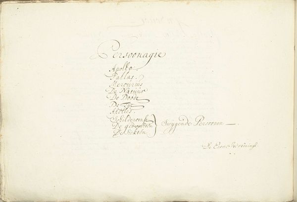 Curator: This is the title page of the Lucas van Leyden collection. Created between 1680 and 1721, it presents as a rather unassuming example of graphic art from the Dutch Golden Age. Editor: My immediate impression is one of intricate craftsmanship; it feels like holding a tangible piece of history, yet simultaneously, it fades almost into ephemerality with its delicate lines on aged paper. Curator: Indeed. Its materiality is fundamental to understanding its value. We're looking at ink on paper, an engraving. Consider the physical act of production; the painstaking labour involved in hand-lettering this text with precision. Think about the networks of paper production, ink manufacture, and printmaking that made such an object possible, a complex material exchange. Editor: From a historical perspective, what strikes me is the context in which this title page functions. It acts as a portal, guiding the reader into a collection but it also signifies the status of Johannes Wtenbogaerdt. The text indicates Wtenbogaerdt, an Amsterdam public treasury official collected and compiled the artworks over half a century. How do those institutional networks contribute to this page's existence? Curator: Absolutely. The Dutch Golden Age was a time of burgeoning capitalism, of a new public. Notice how the script typography itself conveys both authority and refined taste? The lettering isn’t just informative; it’s performative, communicating wealth and knowledge, key tools for solidifying political standing. Editor: Precisely! This "simple" title page encapsulates broader cultural shifts, doesn’t it? It bridges artistic accomplishment with political power and the emerging role of civic institutions in shaping artistic canons. How do we even begin to understand the significance of a collection through the lens of its title page? Curator: For me, the emphasis is always on the hand and how the artist mediated culture through materiality and how its circulation solidified artistic value at the time. It also forces me to contemplate contemporary hand lettering practices on the internet, which although visually reminiscent are drastically different in production, distribution and subsequent cultural role. Editor: A fascinating juxtaposition. And I'm left pondering how our interpretation of this work might shift with further insights into the personal narrative of both Lucas van Leyden, Johannes Wtenbogaerdt and the specific institutional dynamics in Amsterdam during the Golden Age.
