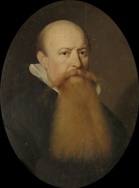 Curator: Look at this portrait. Józef Simmler painted "Portrait of Capuchin Beniamin Szymański" around 1856. The textures of the habit practically whisper, don't they? And the somber tones seem to tell their own story before we even consider who the sitter was. What catches your eye immediately? Editor: It's the rope. Framing the base of the image and drawing my eye from the dark cowl, upward across the sitter's imposing beard. The material itself is so tangible—a strong contrast to the ephemeral nature of religious devotion. And that dark cowl must be unbearably heavy. I'd love to know how much the artist or sitter had to pay for those raw materials to make the composition and portrait itself. Curator: I love that juxtaposition. He seems grounded and otherworldly all at once, doesn't he? Like Simmler captured not just his likeness, but some essential duality within him. I see so much in that face: quiet contemplation, resolve. Maybe even a flicker of… humor? I feel as if his eyes reflect an entire library within themselves. Do you get a similar feeling? Editor: The feeling I get is less ethereal, more to do with a sort of practical observation. How did the artist mix the oils to create the tones? Did the artist purchase them or grind them by hand? Those shades of brown and black speak to both the monastic life but also the earth itself, like the dye came straight from the monastery garden. He must have used the chiaroscuro technique that had become somewhat of a norm back then...I see it, but without it I doubt it could achieve that depth! Curator: See, and I find myself swept away by what Simmler *implies*, the parts unseen and suggested. What wasn't recorded? Editor: I can definitely see that it would not exist without the material culture to support it. That push and pull between the tangible and the transcendent makes this portrait truly magnetic, isn't it? Curator: Precisely. A perfect blend, I believe. Well, this exploration certainly leaves one feeling contemplative! Editor: And keenly aware of the textures that shaped even our most profound thoughts. On to the next artwork, then?