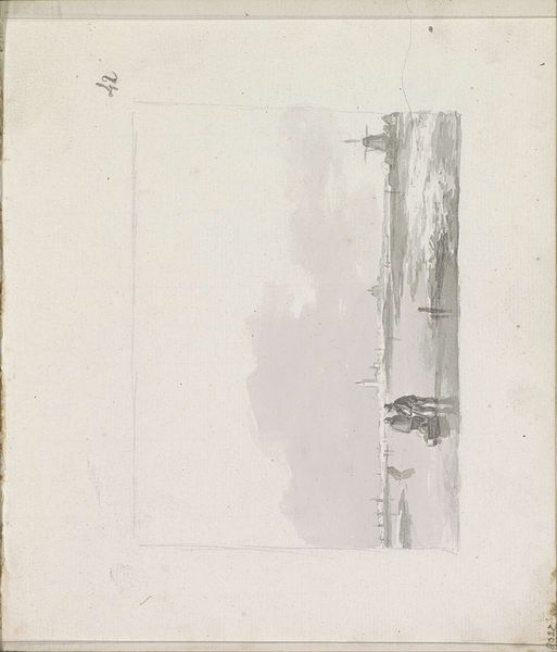 Adrianus Eversen made this landscape with water and sailing ships, using pencil to convey the scene. Eversen, who lived and worked in the Netherlands during the 19th century, was known for his cityscapes which often romanticized Dutch urban life. Looking at this sketch, we might consider how the social and political context of the Netherlands shaped its artistic production. During Eversen’s time, the Netherlands was undergoing significant industrial and economic changes. The ships in the drawing stand as representations of trade and colonialism, intertwined with national identity. The sketch evokes a sense of nostalgia and perhaps even a subtle acknowledgement of the colonial history that was a part of the economic landscape. Eversen invites us to reflect on the complexities of progress and how they intersect with individual and collective experiences.