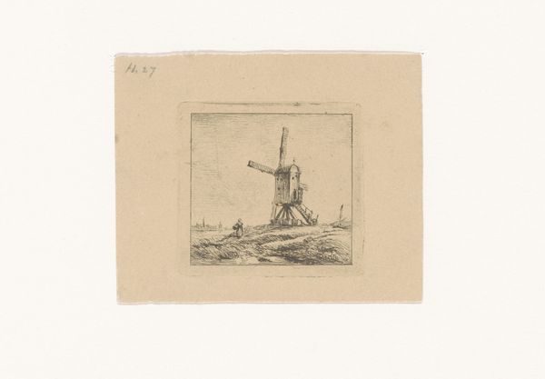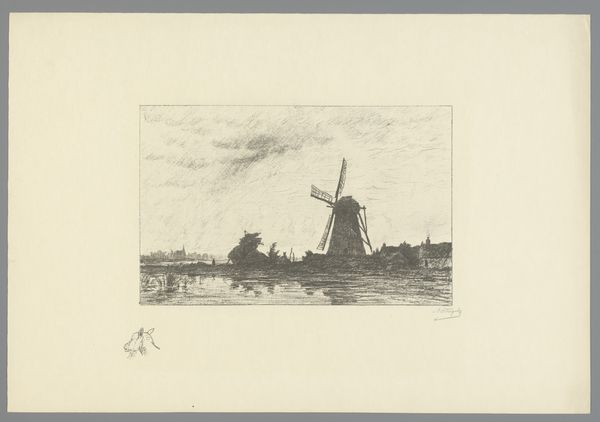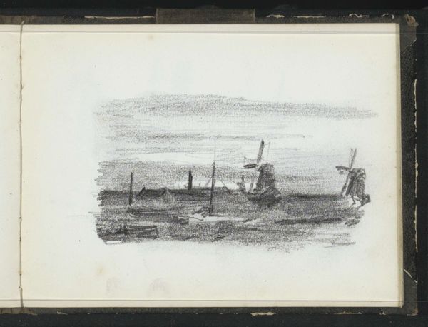 Editor: Here we have "Landscape with a Mill on a Canal," dating roughly between 1841 and 1874, by Willem Hendrik Stam. It's a pencil drawing and, honestly, I find it quite peaceful. What do you see in this piece? Curator: Peace, yes, but also a tension. A windmill, iconic in Dutch landscapes, becomes more than just scenery when we look at its socio-political implications. Windmills powered the Dutch Golden Age, an era built on mercantile capitalism and, tragically, colonialism. How complicit is this seemingly innocent landscape in those histories? Editor: I hadn’t considered that! So, the windmill isn’t just picturesque. Curator: Exactly. Consider also the human figures dwarfed by the landscape, suggesting a certain power dynamic. Whose labor built that canal, who profits from it? The idyllic scene masks potential exploitation. What might seem ‘realistic’ is, in fact, a very curated version of reality. Editor: I guess I was just looking at it on a surface level. Is that what you mean by curated reality? Curator: Precisely. We, as viewers, have to challenge the dominant narrative and consider marginalized perspectives. What stories aren't being told here? Who is absent from this landscape? Editor: This makes me want to dig deeper. To go beyond the aesthetic and find those stories. Curator: Exactly. Art isn't just about what's on the surface, but what's simmering beneath. By interrogating the historical context and power dynamics at play, we can develop a more nuanced understanding of the work, and ourselves.
