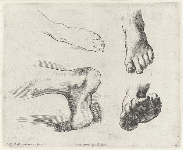 Agostino Carracci rendered this study of two feet in ink, revealing more than anatomical curiosity. Feet, often overlooked, bear the weight of our earthly existence, symbols of pilgrimage, humility, and even subjugation. Consider the act of washing feet, a gesture of profound respect and purification, seen in religious scenes across cultures. In early Christian art, Christ washing the feet of his disciples embodies selfless service. But let us not forget the binding of feet, a practice across cultures that represented control, class and beauty. The naked foot, vulnerable yet strong, echoes through time. The realism with which Carracci captures every detail, from the curve of the sole to the knuckles of the toes, engages us on a visceral level, evoking a subconscious awareness of our own physicality and mortality. It's a reminder that even the most humble subjects carry immense cultural and emotional resonance.