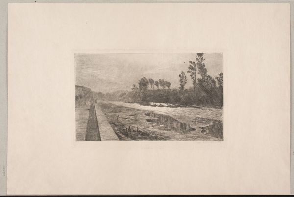 Léon Dolez made this print of Mons and the park gate using etching, a printmaking technique that dates back centuries. The labor-intensive process begins with coating a metal plate with a waxy, acid-resistant substance called a ground. The artist then scratches an image into the ground, exposing the metal beneath. When the plate is submerged in acid, the exposed lines are eaten away, creating grooves. Ink is then applied to the plate, filling the etched lines, and the surface is wiped clean. Finally, the plate is pressed onto paper, transferring the ink and creating the print. Dolez's skillful use of etching captures the subtle textures of the stone wall and reflects the light on the water’s surface. This attention to detail and mastery of the etching process underscores how even seemingly straightforward landscape imagery can reflect deep engagement with materials, making, and the world around us.